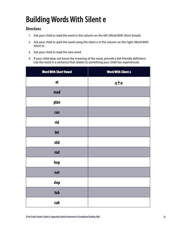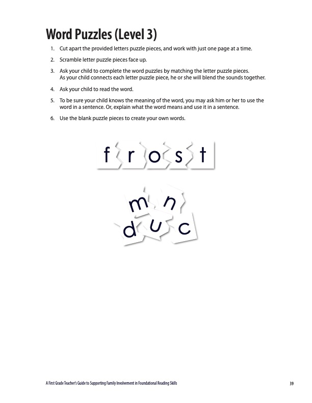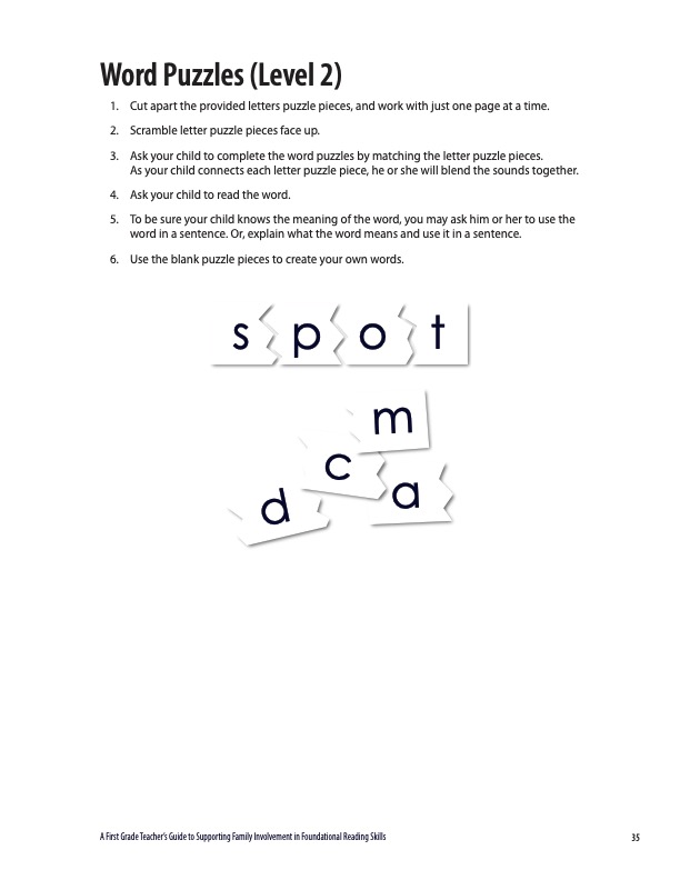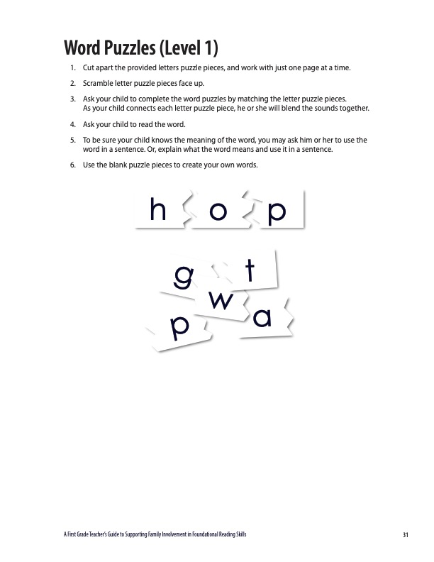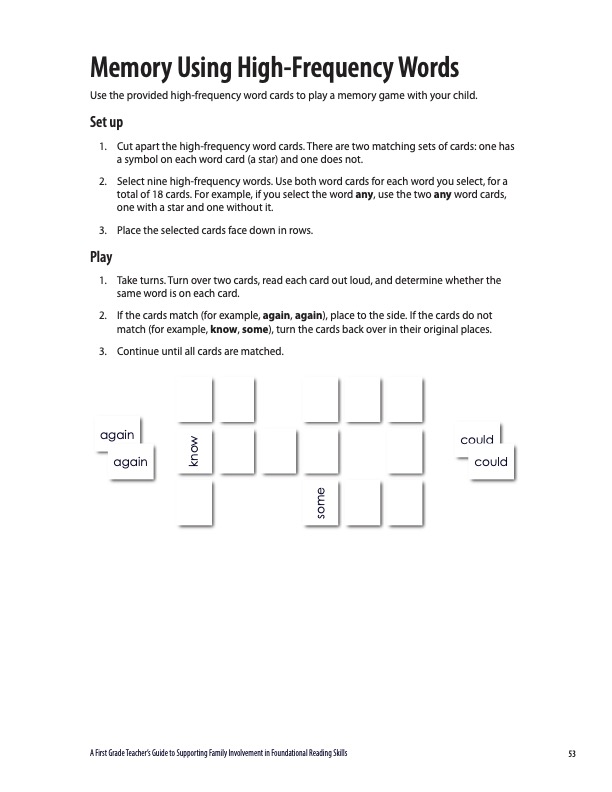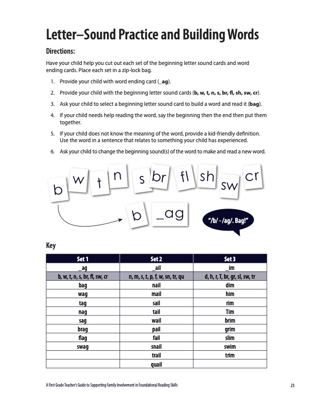 The Family Activities were excerpted from A First Grade Teacher's Guide to Supporting Family Involvement in Foundational Reading Skills, which include First Grade Videos.