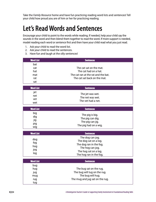 There are many ways to support your child in reading words. For example, provide opportunities for your child to practice reading words in a list or on flashcards. It is also important for children to practice reading words in sentences and stories.