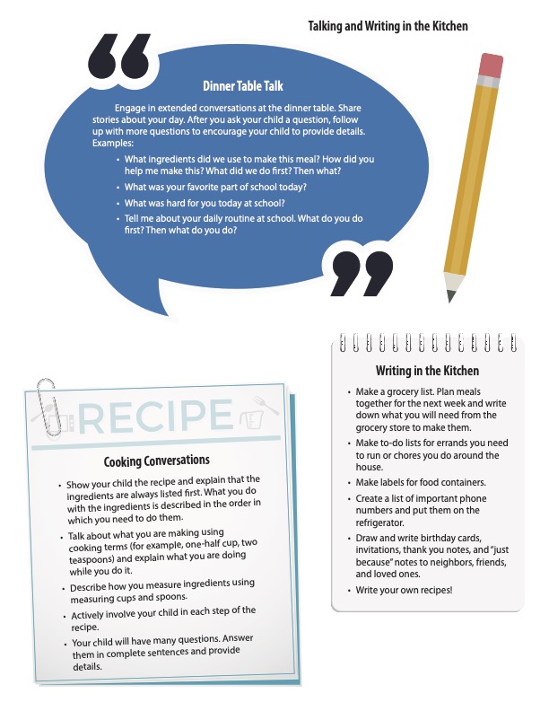 Use these questions, activities, and conversation starters to have fun while you talk and write in the kitchen.
