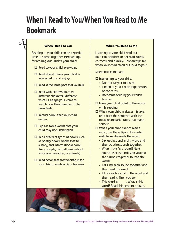 On one side of this bookmark are tips to use as you read out loud to your child. On the other side are tips for when your child reads out loud to you.